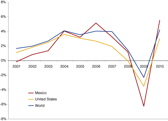 GDP Growth for Mexico, the U.S. and the World